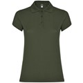 Damen kurzärmliges Poloshirt. Nackenband. Rippstrick-Kragen und Ärmelbündchen. Seitennähte. Taillierter Schnitt. Schmale 3-er Knopfleiste. Seitenschlitze.