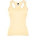 Tight Damen Tank Top mit weiten getrimmten Ärmel und Halsausschnitt. Träger auf dem Rücken im sportlichen Stil, Seitennähte.